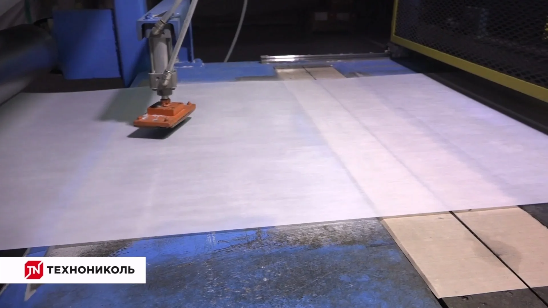 Для нарезки материала по форме его нужно охладить. Температура полотна на стадии нанесения гранул — около 200°С, а для резки его нужно охладить до 40 °С.