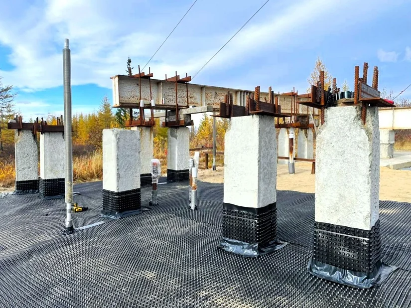 На полигоне «Обдорский» (ЯНАО) начался годовой эксперимент по применению профилированной мембраны PLANTER Standard вместо бетонной стяжки в зданиях с проветриваемым подпольем – стандартной для Арктики конструкции. Пилотный проект осуществляется при тесном сотрудничестве Научного центра изучения Арктики и компании ТЕХНОНИКОЛЬ.
