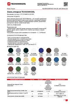 Эмаль алкидная аэрозольная ТЕХНОНИКОЛЬ — это готовый к применению быстросохнущий материал в аэрозольной упаковке, содержащий алкидные синтетические смолы, пигменты, модифицирующие добавки, органические растворители, пропан и диметиловый эфир.