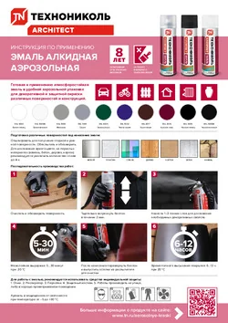 Эмаль алкидная аэрозольная ТЕХНОНИКОЛЬ — это готовый к применению быстросохнущий материал в аэрозольной упаковке, содержащий алкидные синтетические смолы, пигменты, модифицирующие добавки, органические растворители, пропан и диметиловый эфир.