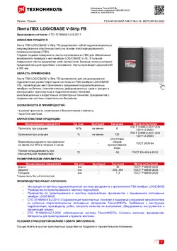 Лента ПВХ LOGICBASE® V-Strip FB представляет собой гидроизоляционную неармированную эластичную ленту на основе пластифицированного поливинилхлорида (ПВХ). Гладкая лицевая поверхность ленты изготовлена из ПВХ для обеспечения возможности приварки к ней мембран LOGICBASE® V–SL. К тыльной поверхности ленты прикреплен слой геотекстиля, боковые полосы которого предназначены для приклейки к основанию. Ленты производят шириной 220 и 300 мм.