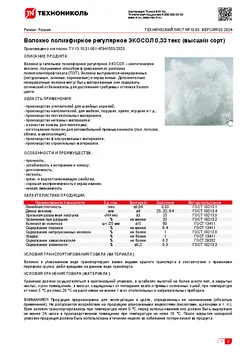 Волокно штапельное полиэфирное регулярное ЭКОСОЛ – синтетическое волокно, получаемое способом формования из расплава полиэтилентерефталата (ПЭТ). Волокна выпускаются неокрашенные (натуральные, зеленые, коричневые) и окрашенные. Дополнительно неокрашенные волокна могут быть матированные или содержать оптический отбеливатель для достижения требуемых оттенков белого цвета.
