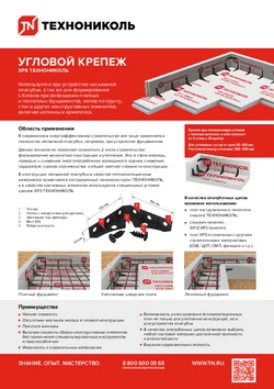 УГЛОВОЙ КРЕПЕЖ XPS ТЕХНОНИКОЛЬ может использоваться при устройстве утепленной шведской плиты, плитных и ленточных фундаментов, полов по грунту, стен и других конструктивных элементов, включая колонны и армопояса.