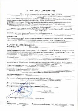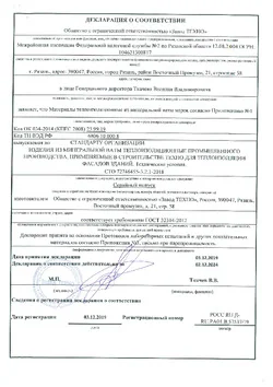| Теплопроводность, λD | Вт/(м*К) | не более | 0.037 | ГОСТ 32314-2023 (EN 13162:2012) |