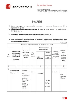 | Относительное удлинение в момент разрыва на образцах-швах | % | не менее | 300 | ТУ 2513-081-72746455-2014, ГОСТ 25945-98 |