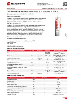 Герметик ТЕХНОНИКОЛЬ универсальный акриловый белый - качественный универсальный герметик для внутренних работ на основе акриловой дисперсии. После нанесения отверждается путём испарения влаги.