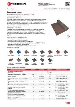 - Битумно-полимерная основа и армирующий полиэфир обеспечивают ковру отличную механическую прочность, минимизируя риск повреждений при укладке и эксплуатации.