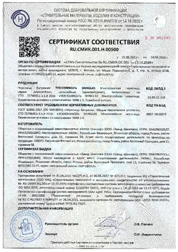 Основа черепицы SHINGLAS — стеклохолст. Материал с двух сторон пропитан улучшенным кровельным битумом и покрыт разноцветными гранулами из натурального базальта. Такая структура делает кровельный материал очень прочным и придаёт ему высокие гидроизоляционные свойства. Натуральный базальт гидрофобен и отталкивает влагу. Используемая при изготовлении черепицы технология запекания гранул вместе с красителем при температуре более 600°C позволяет создать стойкий цвет покрытия, который сохраняется в течение долгого времени.