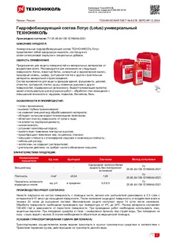 Универсальный гидрофобизирующий состав ТЕХНОНИКОЛЬ Лотус представляет собой однородную жидкость, состоящую из силан-силоксановой эмульсии и специальных добавок.