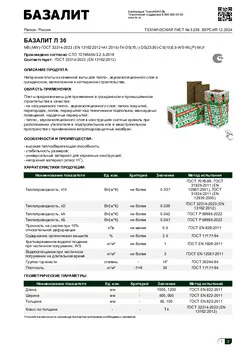 БАЗАЛИТ Л 30 – негорючие плиты из каменной ваты для тепло-, звукоизоляционного слоя в гражданском, малоэтажном и коттеджном строительстве.