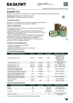 | Теплопроводность, λБ | Вт/(м*К) | не более | 0.043 | ГОСТ Р 59985-2022 |
