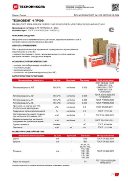 | Теплопроводность, λD | Вт/(м*К) | не более | 0.036 | ГОСТ 32314-2023 (EN 13162:2012) |