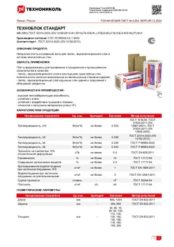 | Теплопроводность, λА | Вт/(м*К) | не более | 0.039 | ГОСТ Р 59985-2022 |