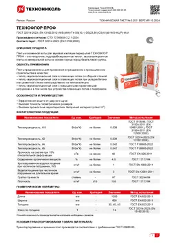 | Теплопроводность, λD | Вт/(м*К) | не более | 0.039 | ГОСТ 32314-2012 (EN 13162:2008) |