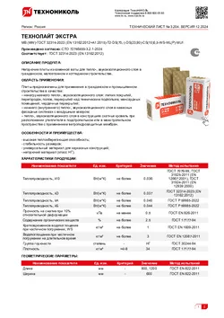 | Теплопроводность, λD | Вт/(м*К) | не более | 0.037 | ГОСТ 32314-2023 (EN 13162:2012) |