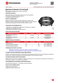 Дренажный фланец Termoclip Д2 из полиэтилена низкого давления, устойчивого к атмосферному воздействию и ультрафиолетовому излучению.
