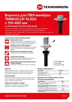 Применяется в качестве листоуловителя с воронкой для ПВХ мембран TERMOCLIP XL503.