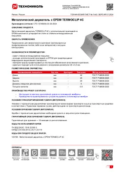 Металлический держатель TERMOCLIP 4С с уплотнительной прокладкой из EPDM выполнен из углеродистой стали со стойким антикоррозионным покрытием.