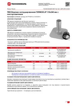| Монтажный диаметр трубы | мм | - | 110 | ГОСТ Р 58939-2020 |
