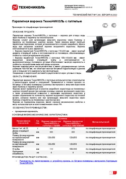Парапетная воронка ТехноНИКОЛЬ с галтелью – воронка для отвода воды через балконы и парапеты на плоской кровле. Воронка служит для организации внешнего водостока через балконы и парапеты на пониженных участках кровли. Также воронка может являться парапетным переливом, которая устанавливается в случаях аварийного сброса воды при засорении основной воронки внутреннего водостока. Воронка изготавливается в двух вариантах: