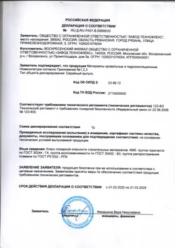 | Группа горючести | - | - | Г4 | ГОСТ 30244-94 |