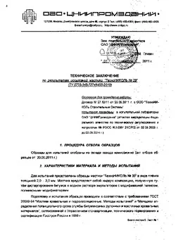 | Гибкость на брусе радиусом (5,0±0,2) мм при температуре минус 35 0С | - | - | трещин нет |