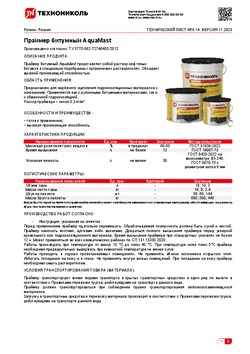 Праймер битумный AquaMast представляет собой раствор нефтяных битумов в специально подобранных органических растворителях. Обладает высокой проникающей способностью и небольшим временем высыхания.