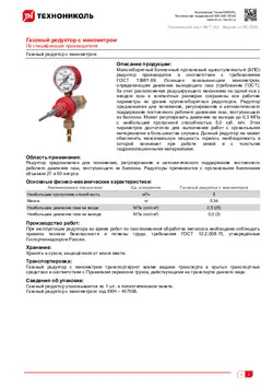 Технический лист Газовый редуктор с манометром