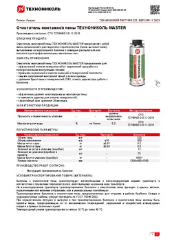 Продукт ТЕХНОНИКОЛЬ применяется при помощи распылителя, который идет в комплекте, или монтажного пистолета. Отличается высокой растворяющей способностью. Очиститель монтажной пены ТЕХНОНИКОЛЬ MASTER удаляет незастывший материал со стеклянных, деревянных оснований, ПВХ, текстиля и кожи. Не портит тефлоновые покрытия и сопла при промывке. Выпускается в аэрозольном баллоне объемом 500 мл, поставляется с адаптером очистки. Имеет прозрачный цвет. Хранится в течение 36 месяцев.