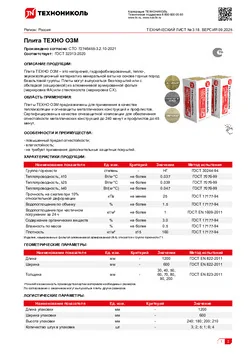 | Наименование показателя | Плита ТЕХНО ОЗМ | Метод испытания | |