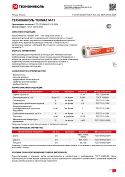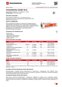 ТЕХНОНИКОЛЬ ТЕХМАТ - негорючий тепло- и звукоизоляционный минеральный мат на основе стекловолокна. Легкий мат имеет широкий диапазон применения и обладает высокими звукоизоляционными свойствами. Материал применяется при температуре изолируемых поверхностей до +330 °С.