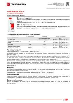 Воздухововлекающая добавка ТЕХНОНИКОЛЬ Aero-D представляет собой добавку на основе композиции синтетических поверхностно-активных веществ. Добавка соответствует ГОСТ 24211-2008 и ТУ 5745-110-727446455-2016.