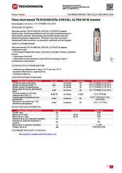 Пена монтажная ТЕХНОНИКОЛЬ SPECIAL ULTRA 65 W зимняя применяется при температуре от -18°С до +35°С. Температура баллона от +18 °С до +25 °С.