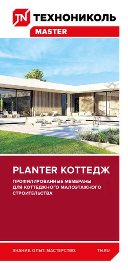 PLANTER® Коттедж – это полимерные профилированные мембраны, применяемые в индивидуальном жилищном строительстве в качестве защитного материала. Мембраны изготавливают путём формирования в единое полотно сырьевой массы из полиэтилена высокой плотности (HDPE). Вся площадь лицевой поверхности мембран выполнена в виде выступов высотой 8,5 мм.