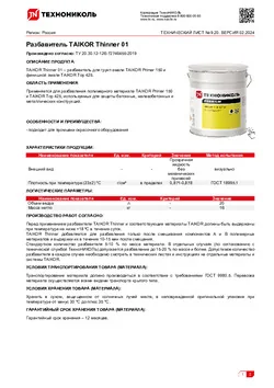 Стандартное количество разбавителя 5-10 % по массе материала. В отдельных случаях (по согласованию с технической службой ТехноНИКОЛЬ) допускается разбавление до 15-20 % по массе и более. Допустимое количество разбавителя в каждом случае необходимо смотреть в технических листах и инструкциях на отдельные материалы и системы TAIKOR.
