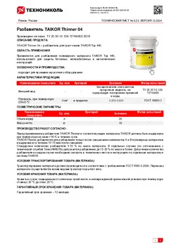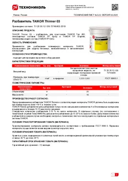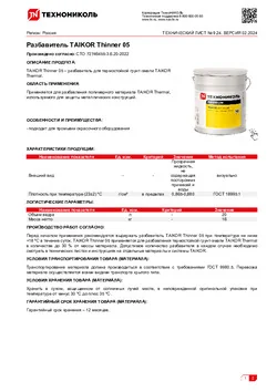 TAIKOR Thinner 03 – разбавитель для грунт-эмали TAIKOR Top 490, огнезащитных составов TAIKOR FP Epoxy и TAIKOR FP Graphite, теплоизолирующего состава TAIKOR FP Extra.