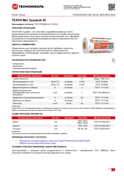 | Толщина | мм | 40, 50, 100 | 50 | ГОСТ EN 823-2011 |