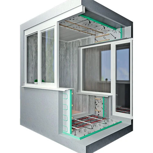 Монтаж теплоизоляционных плит LOGICPIR на балконе осуществляется в 4 этапа: