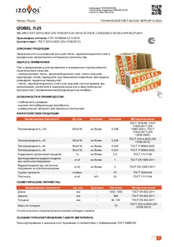 | Теплопроводность, λD | Вт/(м*К) | не более | 0.039 | ГОСТ 32314-2023 (EN 13162:2012) |