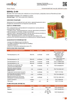 | Теплопроводность, λБ | Вт/(м*К) | не более | 0.042 | 0.042 | ГОСТ Р 59985-2022 |