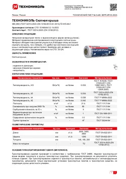 | Теплопроводность, λD | Вт/м·°С | не более | 0,035 | ГОСТ 32314-2023 (EN 13162:2012) |