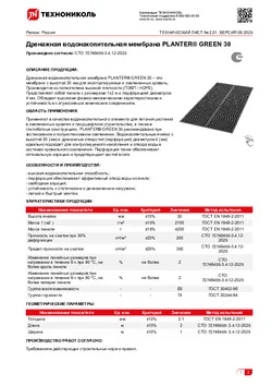 | Водонакопительная способность | л/м² | не менее | 14 | СТО 72746455-3.9.26-2025, DIN 4095 |