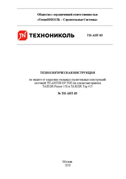 - ТИ-АНТ-03 по защите от коррозии стальных строительных конструкций системой ТН-АНТИКОР Топ на основе материалов TAIKOR Primer 150 и TAIKOR Top 425;