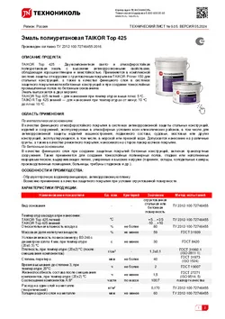Температура воздуха при нанесении: TAIKOR Top 425 летний TAIKOR Top 425 зимний |