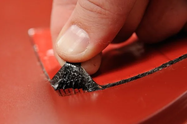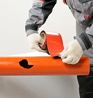 Перед приклейкой материала поверхность необходимо очистить и обезжирить. Температура поверхности и материала должна быть не менее +5 °С. Измерьте и отрежьте необходимое количество материала. Для более надежной герметизации лента должна перекрывать отверстие на 3–5 см с каждого края в зависимости от величины повреждения.