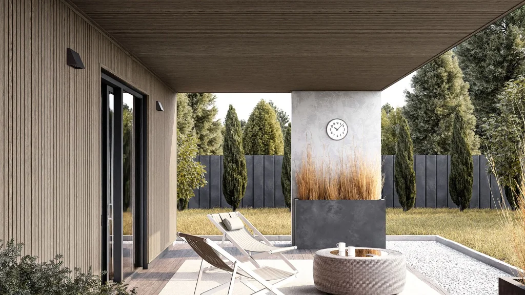 - Блок-хаус — имитация оцилиндрованного бревна для создания уютного стиля.