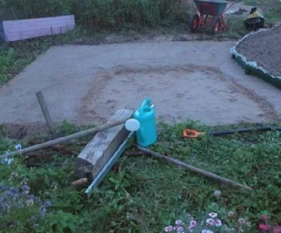 Итак, я сняла дёрн на 5-7 см в глубину полностью со всей поверхности площадки.
