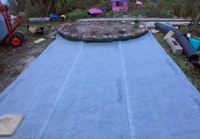 Целью было не столько сделать идеально ровную площадку под укладку мембраны, сколько приподнять участок низины и избавить его от затопления талыми и дождевыми водами. Поднимала уровень по разметочной нити, закрепленной между двумя колышками, периодически перепроверяя уровнем.