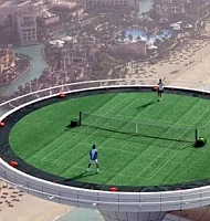 На вершине отеля Burj Al Arab находится самый высокий теннисный корт в мире с панорамными видами и возможностью сыграть в облаках для тех, у кого стальные нервы. Корт расположен на высоте 200 метров, а в перерывах между играми превращается в вертолетную площадку.