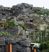 Постепенно профессор соорудил из земли, арматуры, щебня и пластика конструкцию, имитирующую скальную породу. Теперь дом не узнать: снаружи он похож на загородную виллу, расположенную высоко в горах.